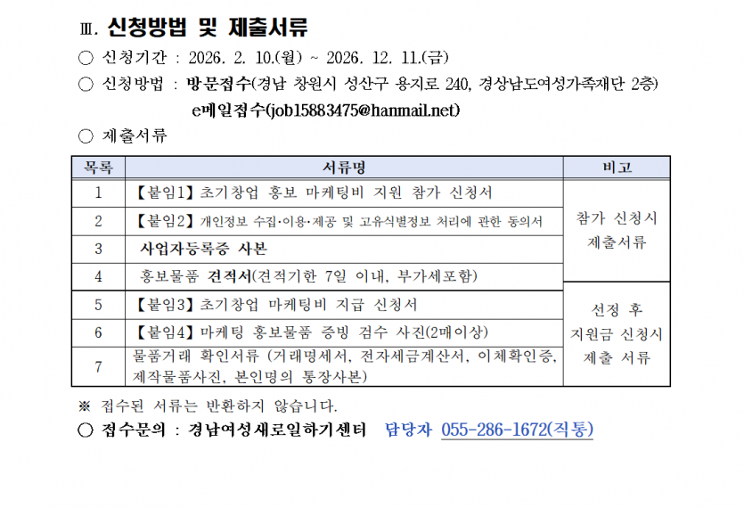 [경남새일 공고 제2026년-12호] 2026년 초기창업 홍보 마케팅비 지원 (예비)여성 창업자 모집공고