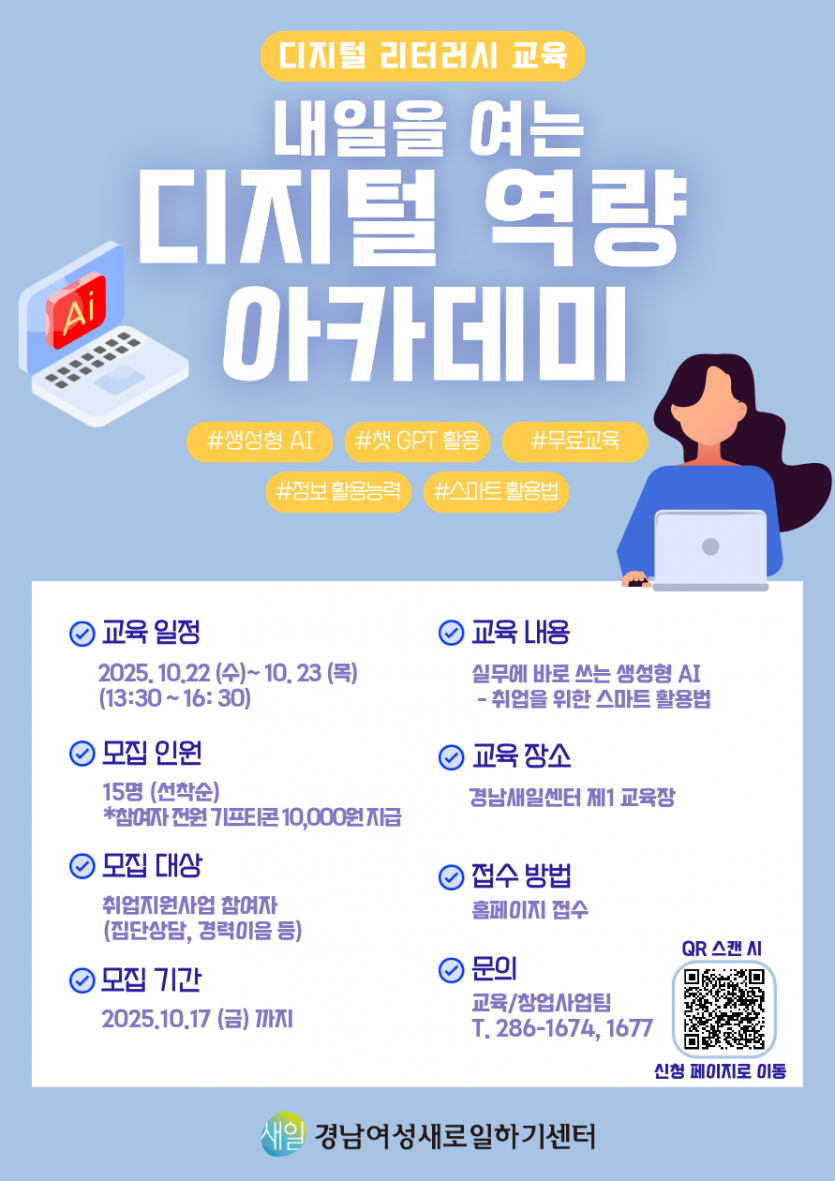 [경남새일 공고 제2025-43호] 디지털 리터러시 교육 : 내일을 여는 디지털 역량 아카데미 참여자 모집