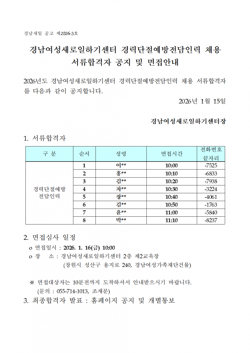 6. 기타 경남여성새로일하기센터가 부적당하다고 판단한 경우