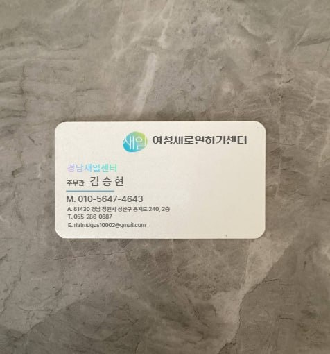 최근 여성새로일하기센터(경남새일센터) 명칭이 기재된 명함을 사용하여